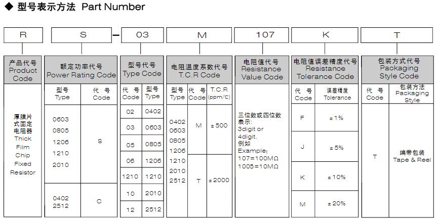風華高科高阻值厚膜片式固定電阻器型號表示方法:
